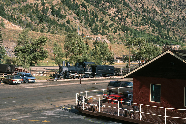 Dann ging es weiter zur Georgetown Loop Railroad, einer einst der Abfuhr von Silbererz dienenden Schmalspurbahn. Die Lok 44 von 1921 war unmittelbar vor unserem Motel als Blickfang aufgestellt. |