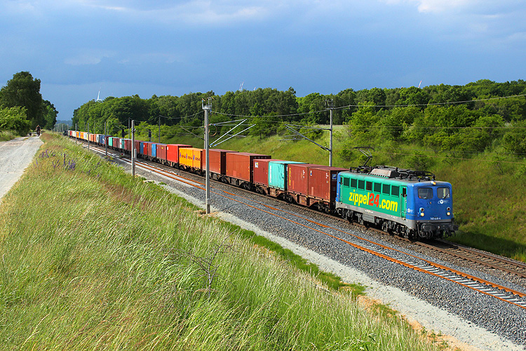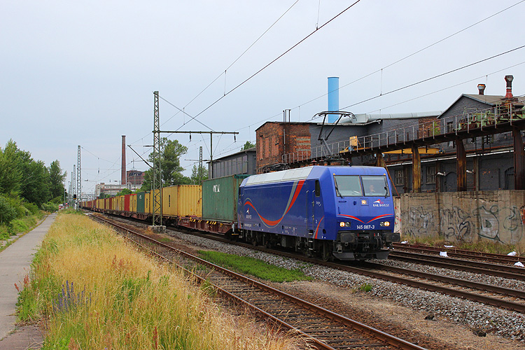 Wenig später fuhr 145 087 von SRI mit dem Metrans-Containerzug Hamburg - Leipzig in die andere Richtung. |