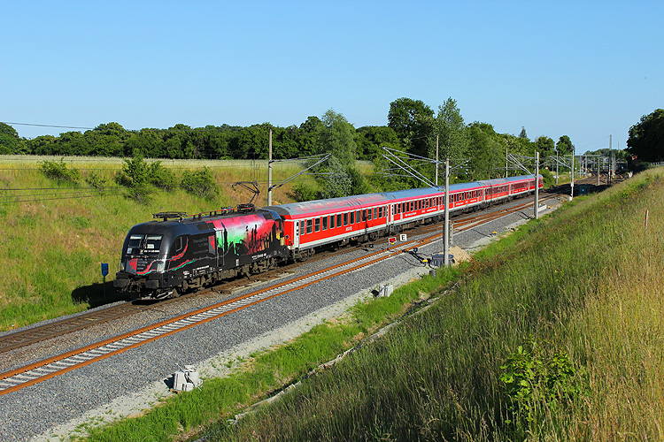 Am 04.06.2015 unternahm ich eine Nachmittagstour nach Hohenwulsch an der Strecke Stendal - Salzwedel, die zu jener Zeit an dieser Stelle wieder ihr zweites Gleis erhielt. So konnte ich im für den Ausbau frisch gerodeten Einschnitt unter anderem 182 509 mit dem IRE 18092 Berlin - Hamburg aufnehmen. |