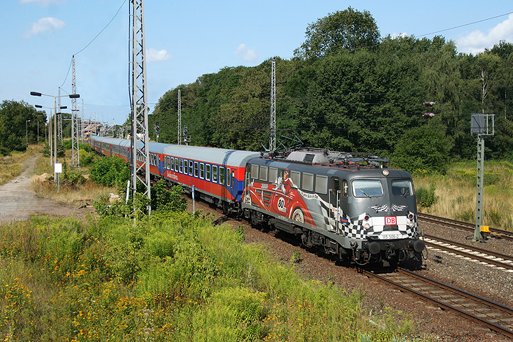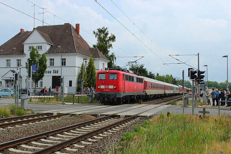 Dann ging es weiter nach Breddin, wo ich unter anderem 115 509 mit einem Kreuzfahrer-Sonderzug von Warnemünde nach Berlin aufnehmen konnte. |
