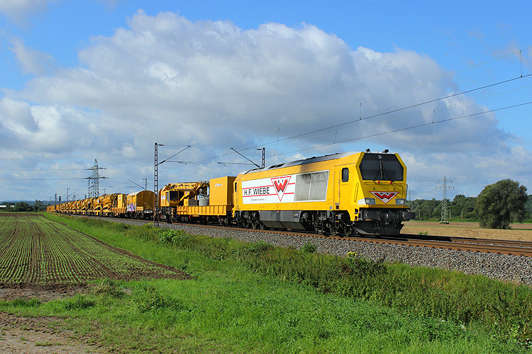Nordwärts war hingegen die Wiebe-Maxima 264 011 mit einem Bauzug unterwegs. |