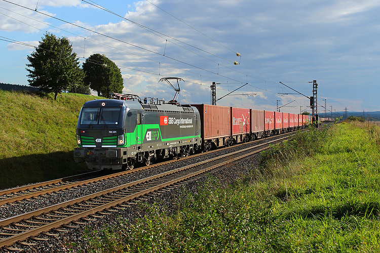 In Gegenrichtung war SBB-Cargo 193 201 mit ihrem Containerzug unterwegs. Insgesamt 14 Vectron-Elloks fuhren mir dort an jenem Tag vor die Linse - das ist in meinem Stammrevier nicht zu schaffen. |