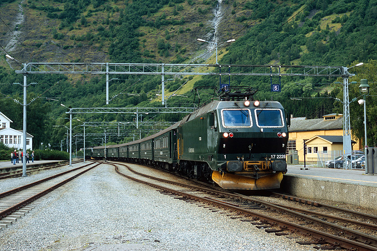 Im Juli 2004 ging es für zwei Wochen an den Hardangerfjord nach Norwegen. Von dort aus war ein Besuch der Flamsbahn machbar. Kaum in Flam angekommen, rollte auch schon ein Zug aus Myrdal in den direkt am Fjord gelegenen Bahnhof ein. |