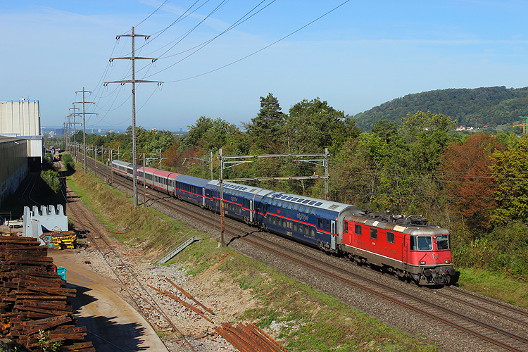 Am 06.09.2023 ging es erneut nach Kaiseraugst. SBB 460 020 hatte den Nightjet NJ 408 Berlin - Zürich am Haken. |