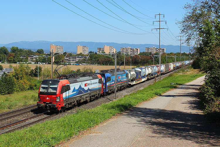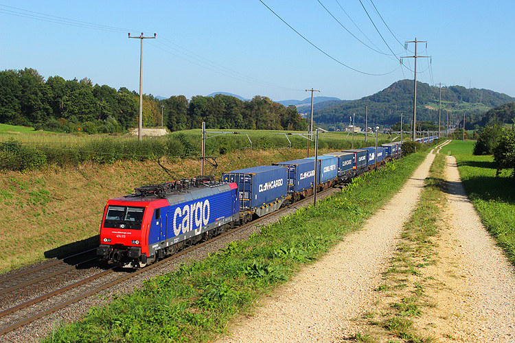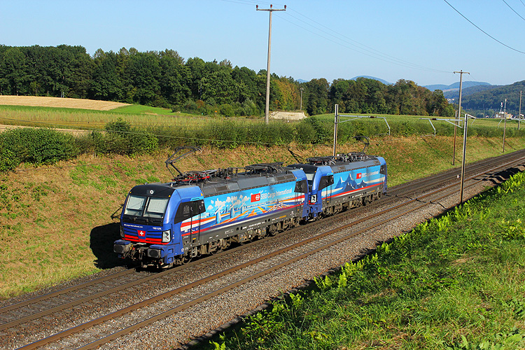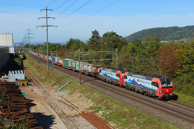 SBB Cargo 193 464+531 waren ebenfalls mit einem Containerzug in Richtung Basel unterwegs. |