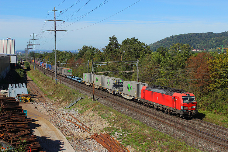 Am 04.09.2023 ging es endlich wieder in die Schweiz nach Kaiseraugst östlich von Basel. SBB Cargo 193 535 machte mit einem KLV in Richtung Brugg den Anfang. |