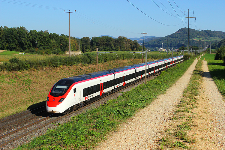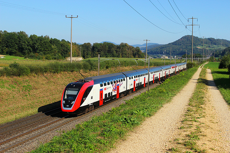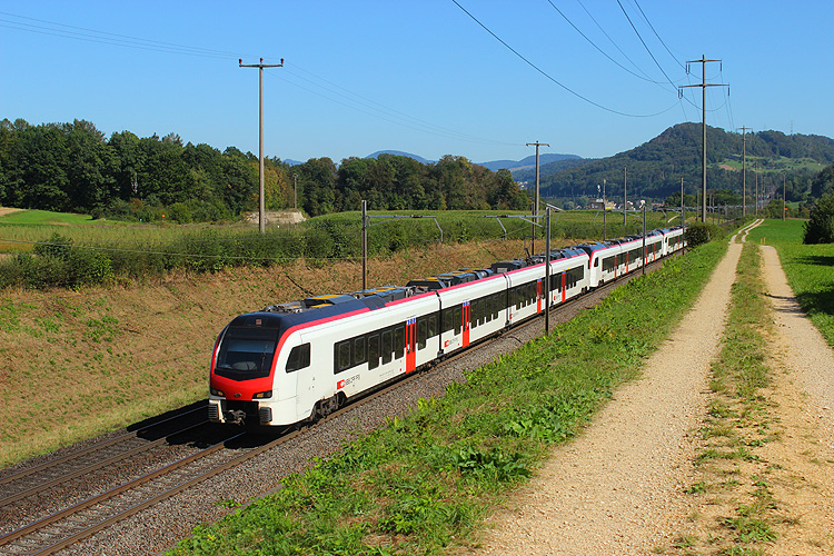 Dann ging es noch weiter östlich nahe Wallbach an die Strecke. SBB 523 519 kam als S1 Frick - Basel. |
