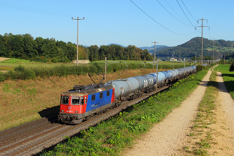 Swiss Rail Traffic 421 374 folgte mit einem Kesselzug. |