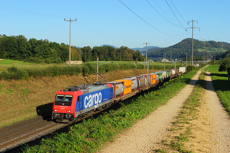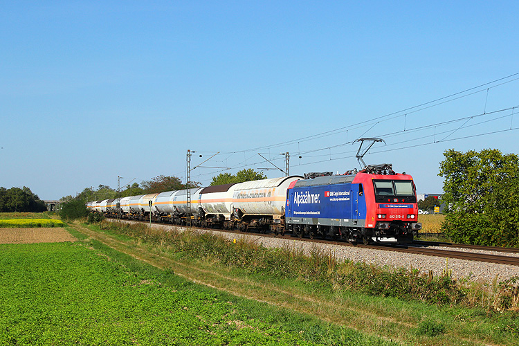 SBB Cargo 482 013 war mit einem Gaskesselzug in Richtung Basel unterwegs. |