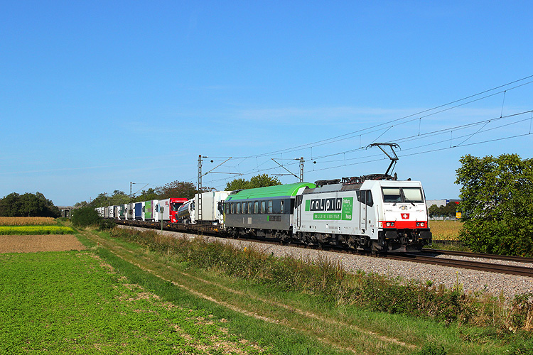 Am Nachmittag machte ich wieder einem kurzen Stellungswechsel nach Buggingen. SBB Cargo 186 903 hing vor einem Cargo-Beamer von Freiburg nach Novara. |