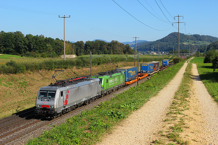 Bei Wallbach konnte ich dann TXL 189 101 + 193 283 mit KLV in Richtung Basel ablichten. |