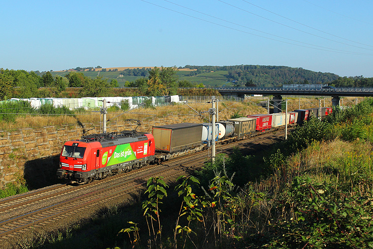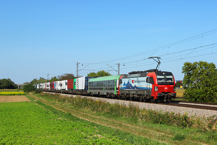 Am 07.09.2023 ging es zunächst kurz an die Rheintal-Neubaustrecke bei Eimeldingen - 193 312 mit KLV in Richtung Basel. |