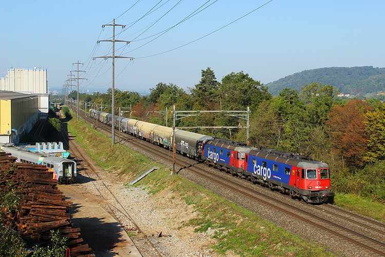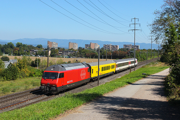 Dann wieder weiter nach Kaiseraugst. SBB 460 044 mit Meßzug in Richtung Basel. |
