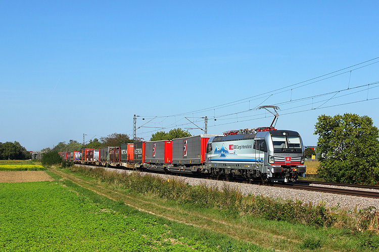 Am Nachmittag ging es wieder nach Buggingen. SBB Cargo 193 111 fuhr mit einem Wetron-KLV in Richtung Basel. |