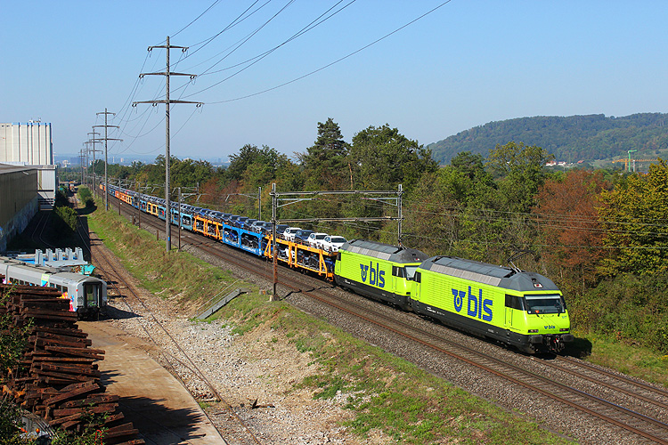 In die gleiche Richtung waren BLS 465 017+015 mit einem Autozug unterwegs. |