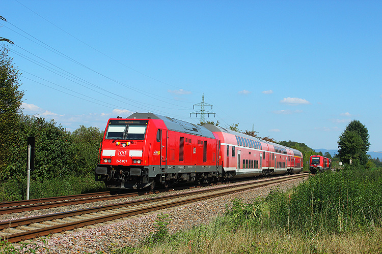 Zum Abschluß ging es noch kurz auf die andere Rheinseite nach Deutschland. Bei Whylen begegnete mir 245 037 mit dem IRE 3056 Friedrichshafen - Basel Bad Bf. |
