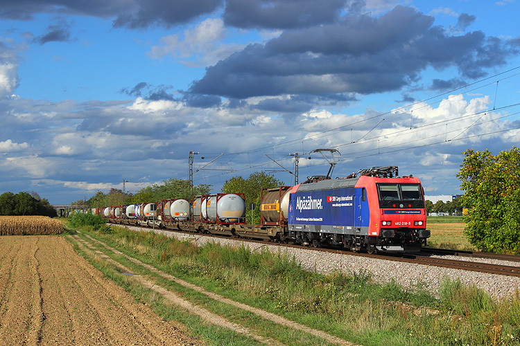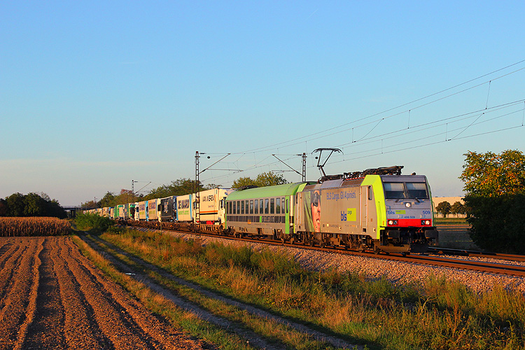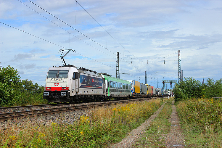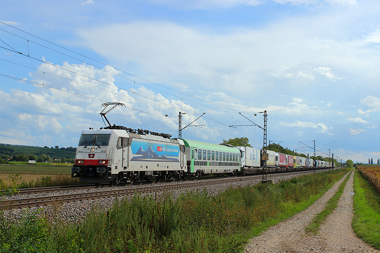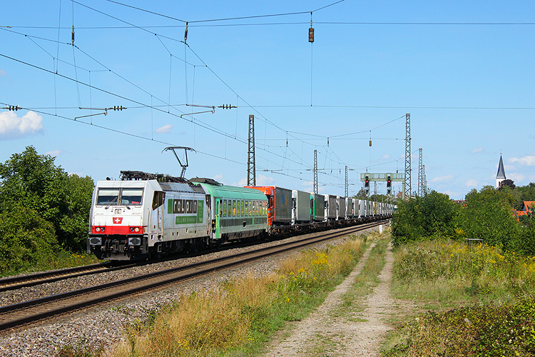 Mittlerweile obligatorisch ist in meinem Jahresurlaub der Besuch der Rheintalbahn. Am 03.09.2022 war es mal wieder soweit, SBB-Cargo 186 909 hing vor einem Cargo-Beamer von Freiburg nach Novara, aufgenommen in Heitersheim. |