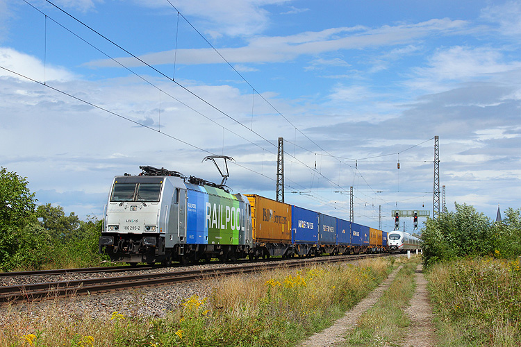 Lineas 186 295 fuhr mit einem Containerzug in Richtung Basel. |