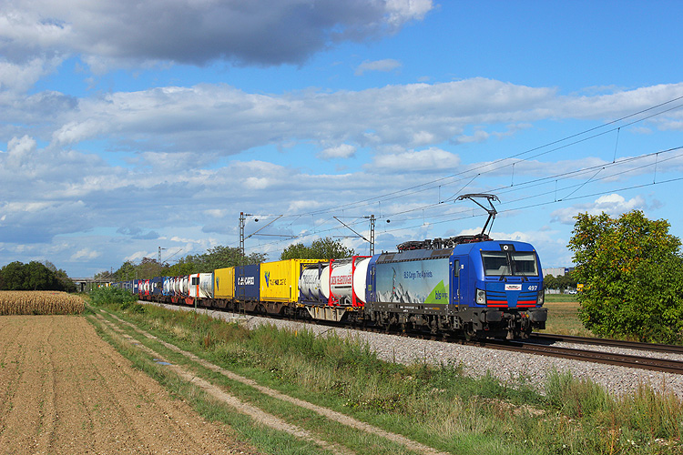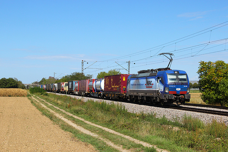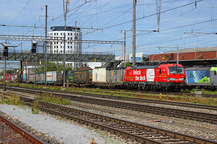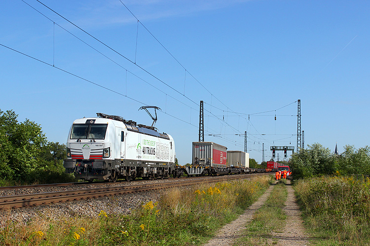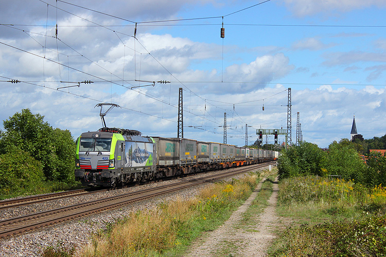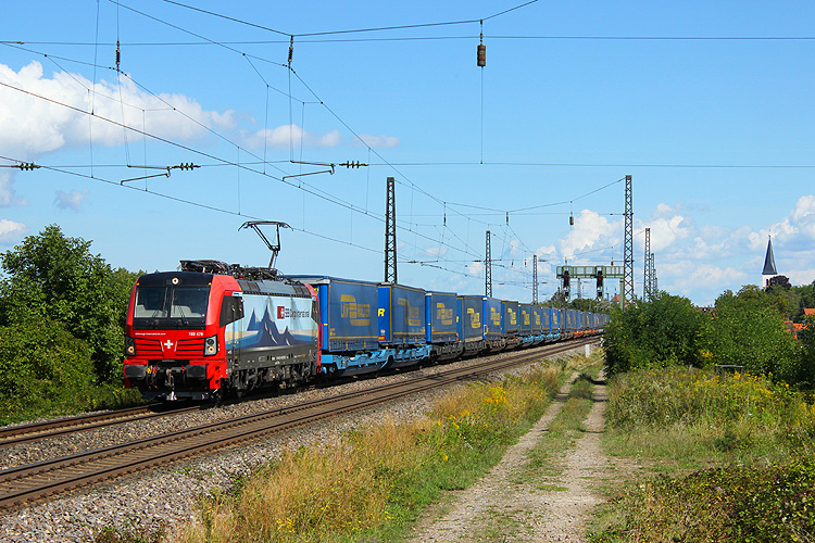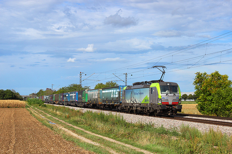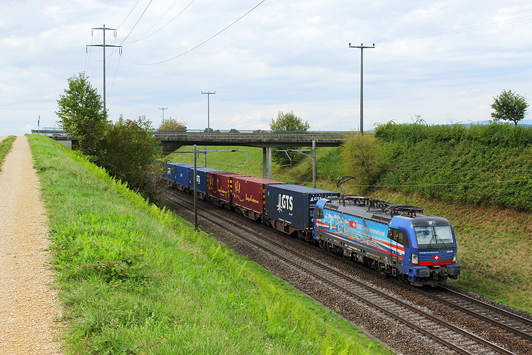 BLS 193 497 fuhr mit einem Containerzug in die gleiche Richtung. |