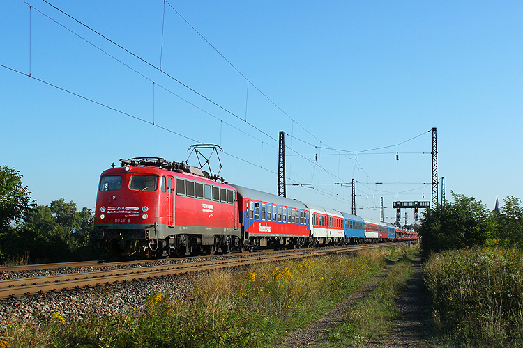 Am darauffolgenden Morgen 04.09.2022 ging es erneut nach Heitersheim. BTE 110 491 hatte den Autoreisezug RDC 1310 Hamburg Altona - Lörrach am Haken. |
