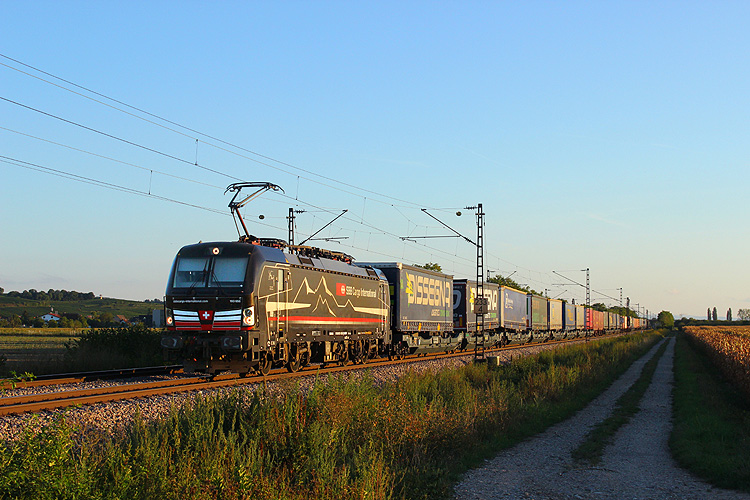 Dann ging es wieder nach Buggingen - SBB Cargo 193 701 mit KLV in Richtung Freiburg. |