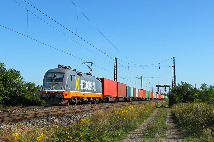 Am nächsten Tag, 05.09.2022, spulte ich das gleiche Programm ab. Hectorrail 242.503 fuhr mit einem Containerzug in Richtung Basel. |