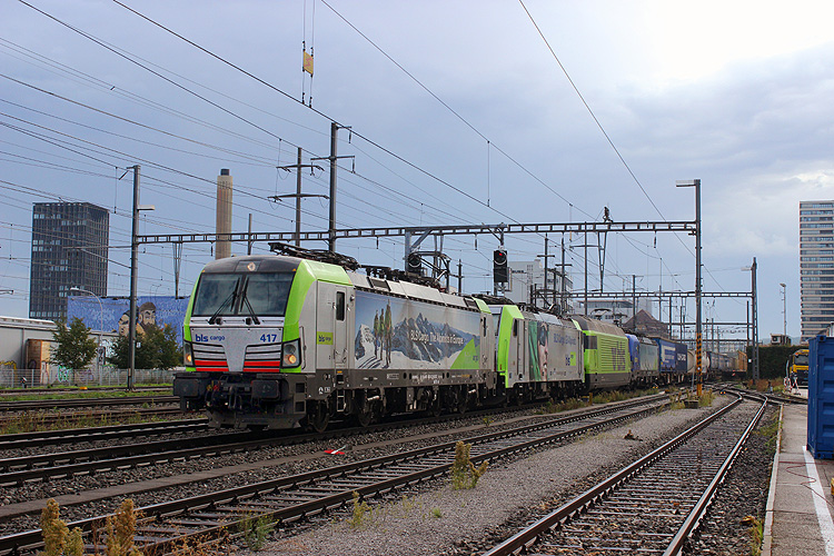 Am 06.09.2022 ging es in die Schweiz zum Bahnhof Pratteln. Ein BLS-Quartett kam mit einem KLV aus Richtung Liestal eingerollt, es führte 475 417. |