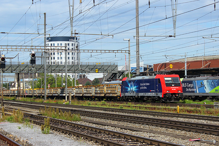 SBB Cargo 484 020 war mit ihrem Mischer hingegen in Richtung Rheinfelden unterwegs. |