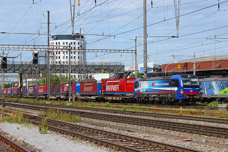 SBB Cargo 193 518 "Ceneri" fuhr mit einem Winner-KLV in Richtung Rheinfelden. |