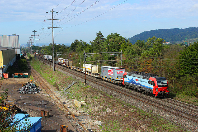 SBB Cargo 193 468 fuhr mit ihrem KLV in Richtung Liestal. |