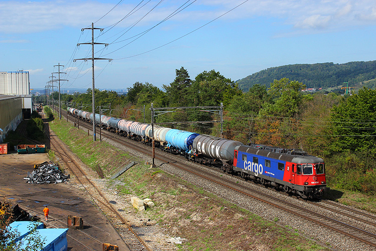 SBB Cargo 620 015 fuhr mit einem Kesselzug in Richtung Brugg. |
