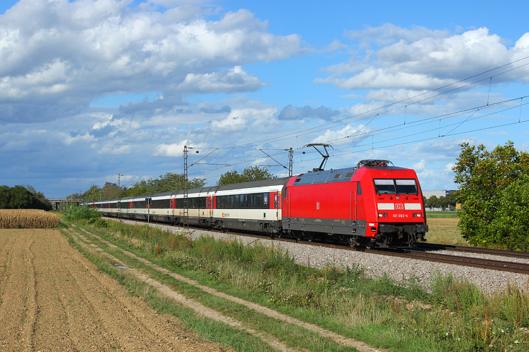 Stark verspätet und somit bestens im Licht - 101 082 mit dem EC 9 Hamburg - Zürich. |