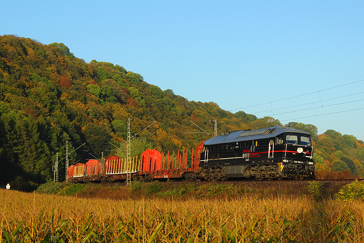 Am 07.10.2022 ging es noch einmal an die Nord-Süd-Strecke nach Freden. EBS 232 592 machte mit einem leeren Holzzug in Richtung Kreiensen den Anfang. |