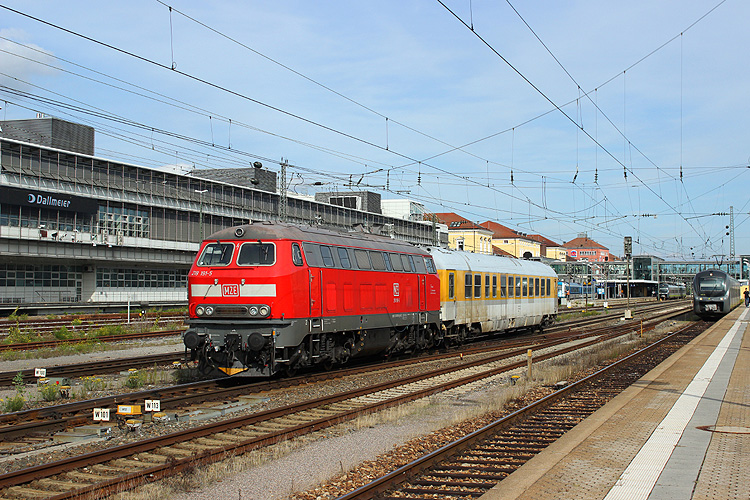 Die Alex-Züge machen in Regensburg Kopf und einen klassischen Lokwechsel von E- auf Diesellok. Der Alex-Werbetaurus 183 001 "Der Adler" hatte einen Zug aus München gebracht. |
