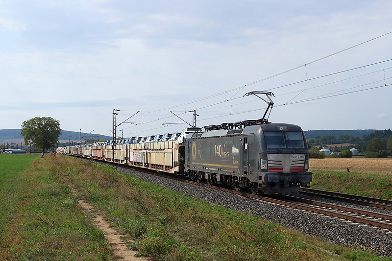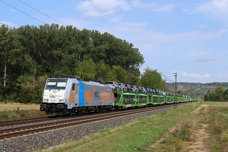 HSL 186 299 mit Hödlmayr-Volvozug in Richtung Würzburg