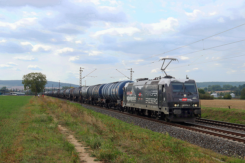 RCG 185 614 mit Kesselzug in Richtung Gemünden