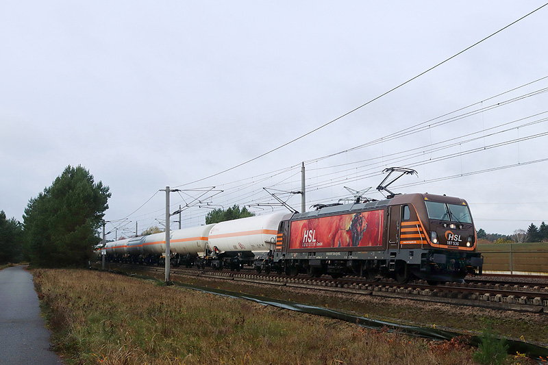 HSL 187 536 war mit einem Gaskesselzug in Richtung Stendal unterwegs.