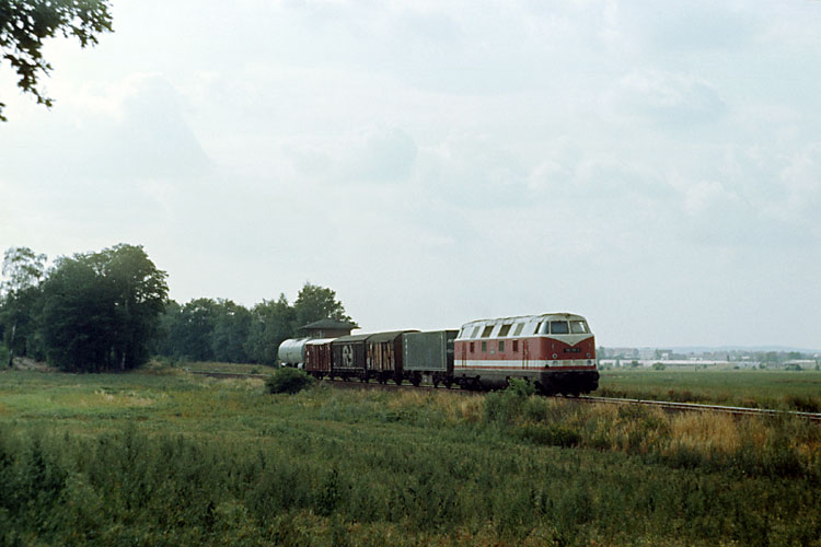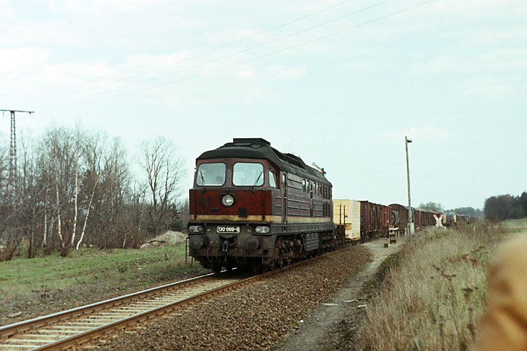 An gleicher Stelle fährt die Seddiner 130 069 mit dem TDe 45432 Seddin - Hannover in Richtung Oebisfelde, 23.04.1982. |