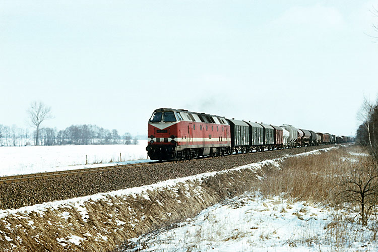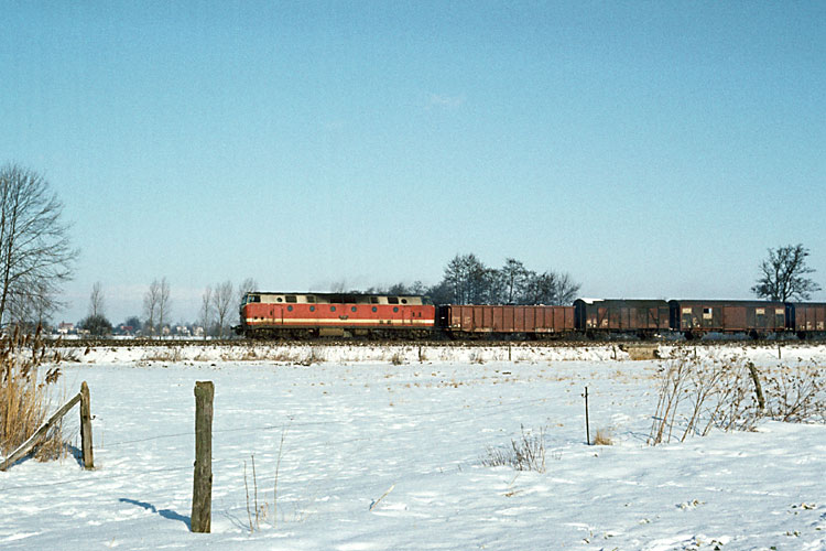 119 150 Bw Oebisfelde mit dem Dg 53730 Stendal - Oebisfelde hinter Gardelegen, 29.01.1987. |