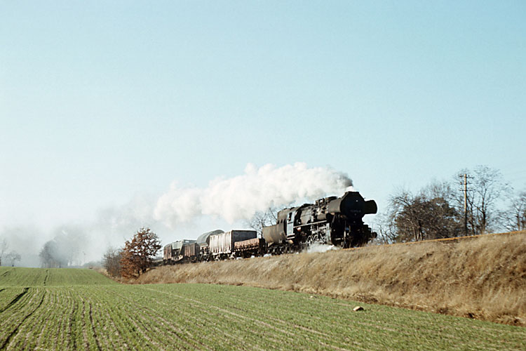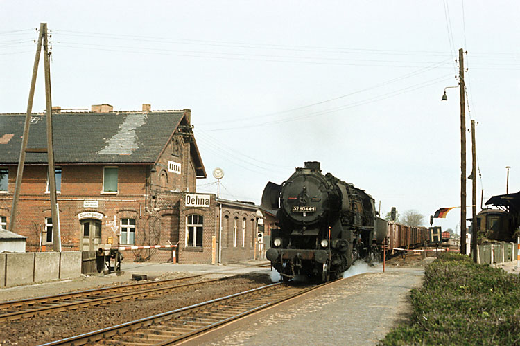 Den dem Nahgüterzug entgegenkommenden Lgo 59199 nahm ich anschließend bei der Durchfahrt Oehna auf, bespannt war er an jenem Tag mit 52 8044. |