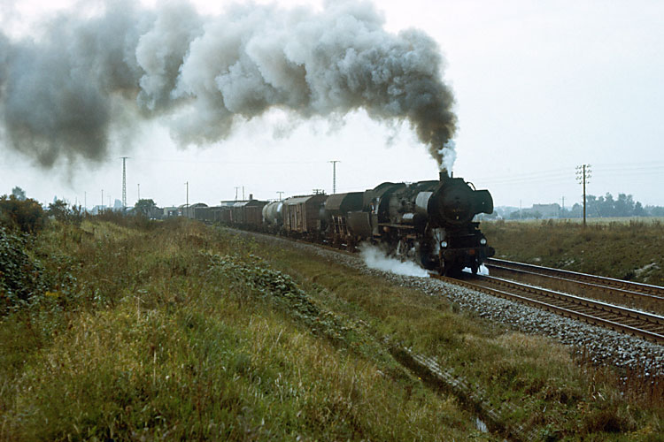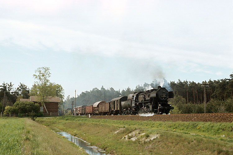 Danach war erst einmal Zeit für eine ausgiebige Mittagspause, denn 52 8025 hatte in Jüterbog mehr als zwei Stunden Wendezeit und andere Dampfzüge gab es zu jener Zeit in der näheren Umgebung nicht mehr. So wartete ich hinter Jüterbog, bis die Lok mit der Rückleistung N 60179 nach Falkenberg gefahren kam. |