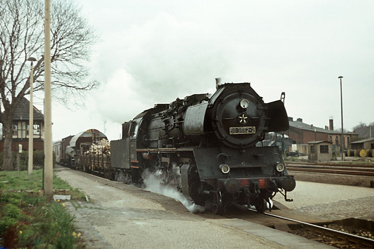 Die nächste Tour zu den Halberstädter 50 unternahm ich am 06.06.1982 und fuhr bis Quedlinburg. Dort kam als erstes 50 3662 mit dem N 66785 nach Ermsleben gefahren. |