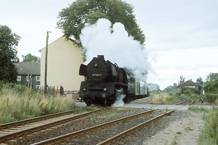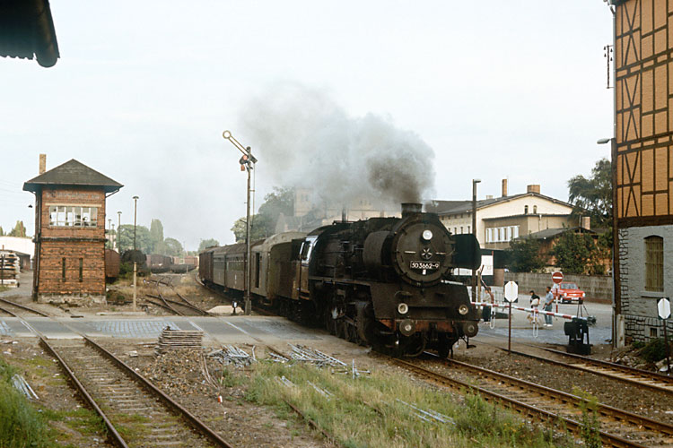 Am 31.07.1988 bespannte 50 3662 den Gmp 68728, hier wieder die Ausfahrt Oschersleben. |