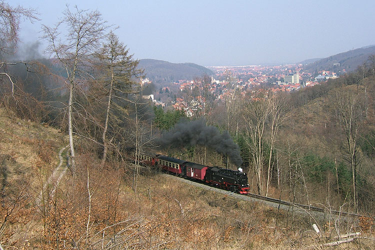Die Talfahrt der 99 7241 nahm ich an jenem Tag unterhalb des Plateaus auf, der Goetheweg verläuft hier ein ganzes Stück parallel zur Strecke. |