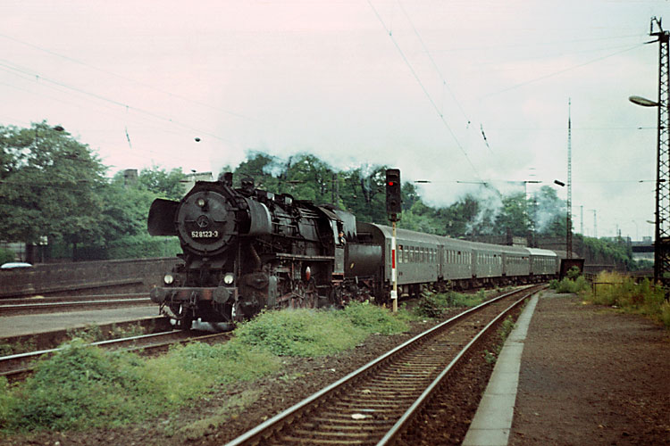 Frühzeitig auf dem Dresdener Hauptbahnhof angekommen, konnte ich dort auch gleich mein erstes Bild von einer Lausitzer 52 machen : 52 8123 vom Bw Kamenz fährt mit dem P 4859 aus Hoyerswerda ein. |