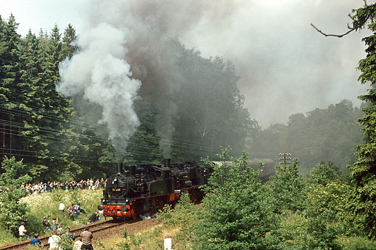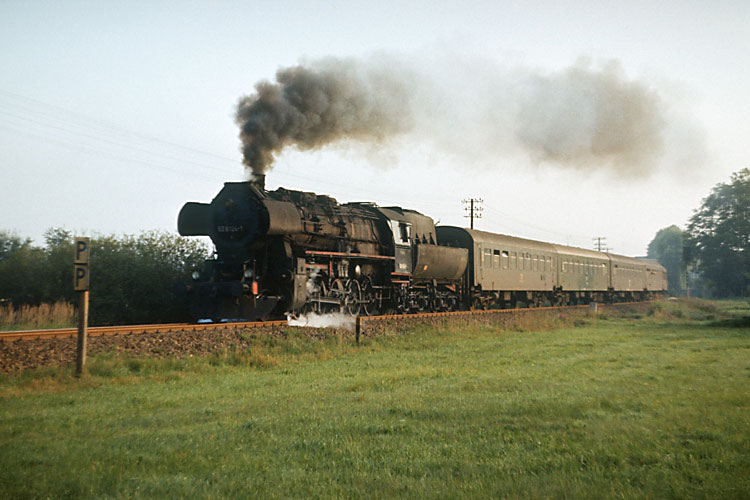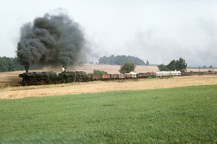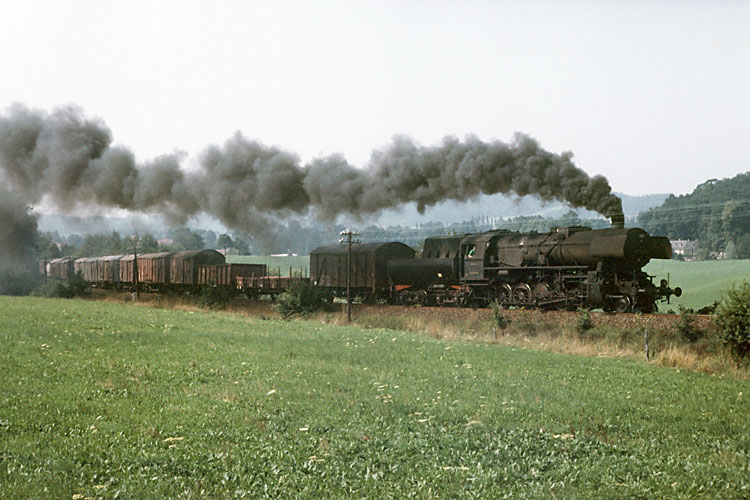 Schließlich lauerten wir noch eine Weile bei Cunnersdorf auf den N 66225 Wiednitz - Kamenz, der dann auch mit der Kamenzer 52 8123 gefahren kam. Das war dann erst einmal die letzte Tour in die Lausitz, da es zu dieser Zeit dringlichere Ziele in Sachen Dampf gab. Erst 1986 machte ich die nächste Tour in diese Region, zu sehen auf der nächsten Seite. |