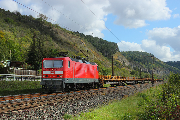 143 346 war mit einem Langschienenzug in Richtung Gemünden unterwegs. |