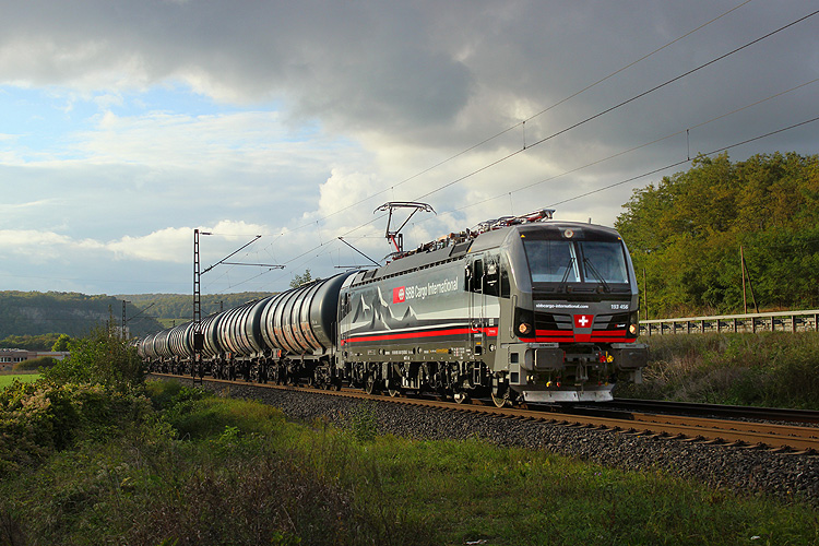 Ebenfalls mit einem Kesselzug war SBB Cargo 193 456 in Richtung Würzburg unterwegs. |