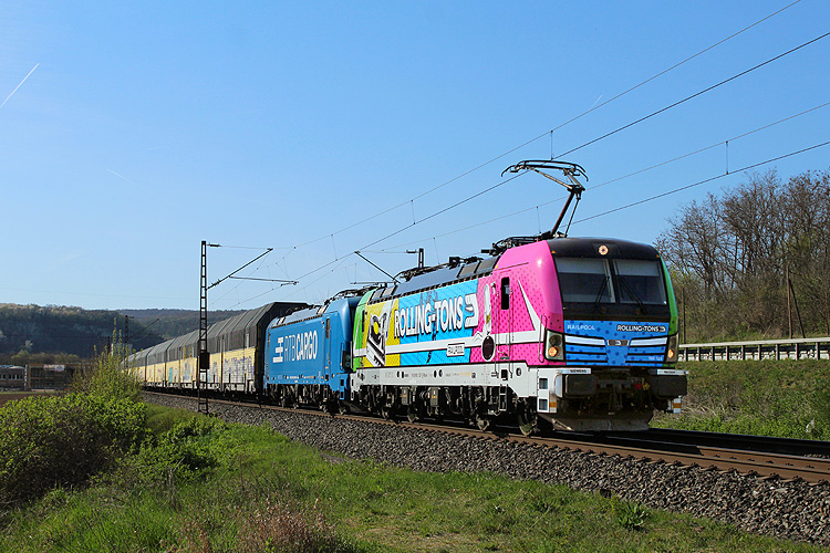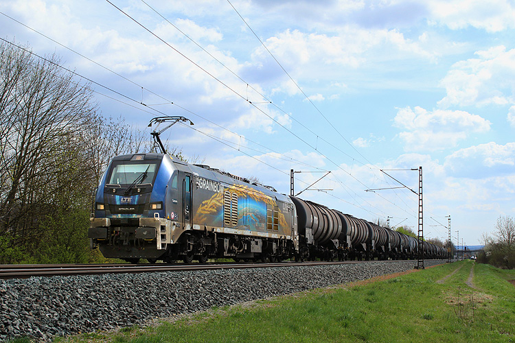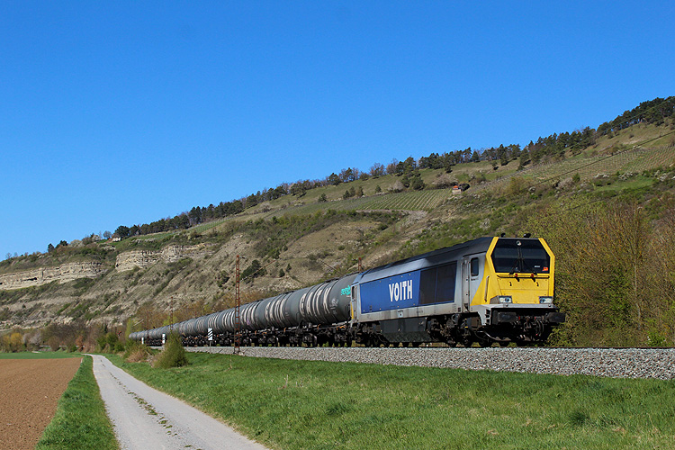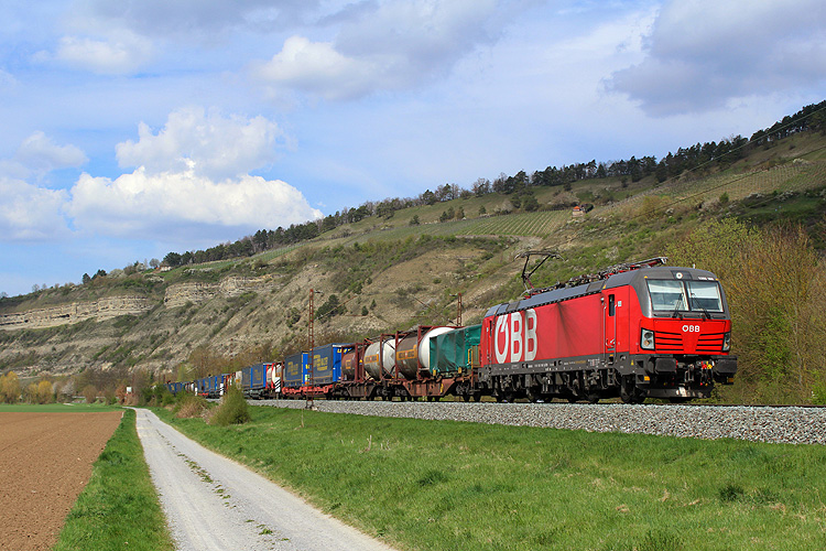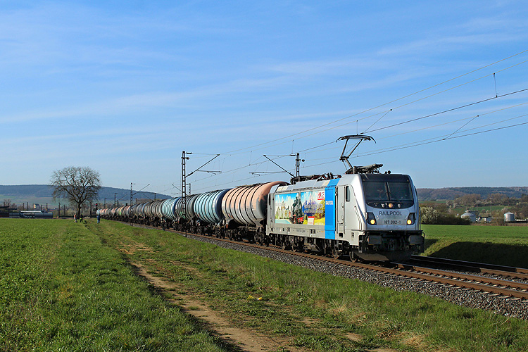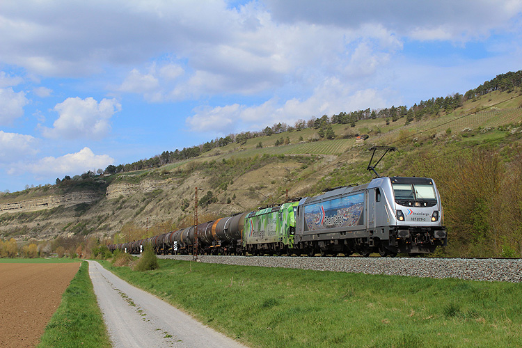RHC 187 077 fuhr mit 192 033 und einem Kesselzug in Richtung Würzburg. |
