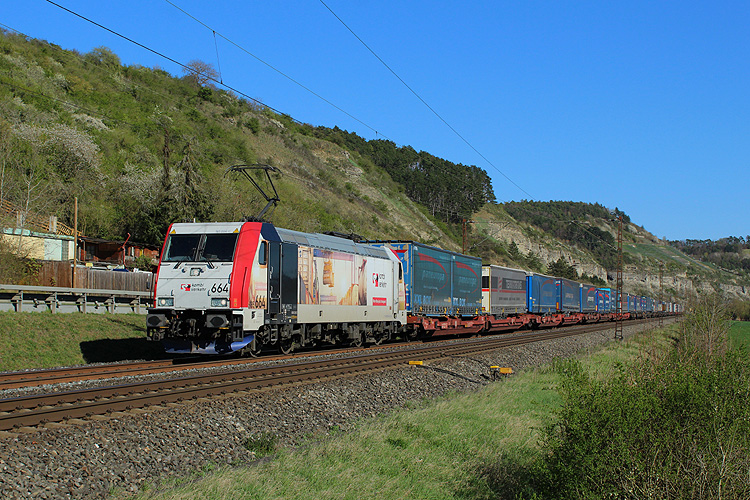 Danach ging es weiter nach Karlstadt - Lokomotion 185 664 mit dem Paneuropa/ Terratrans-KLV Verona - Bremen. |